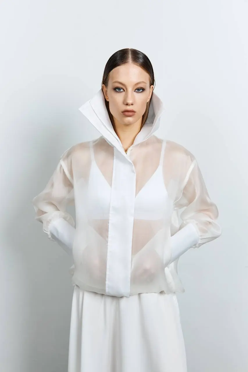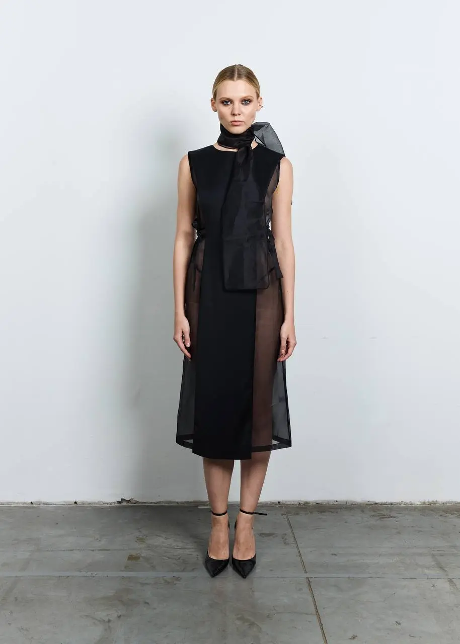 Ми використали напів прямі та напів приталені силуети, прозорість тканин, що є
