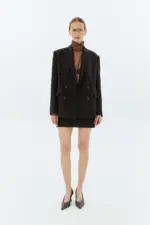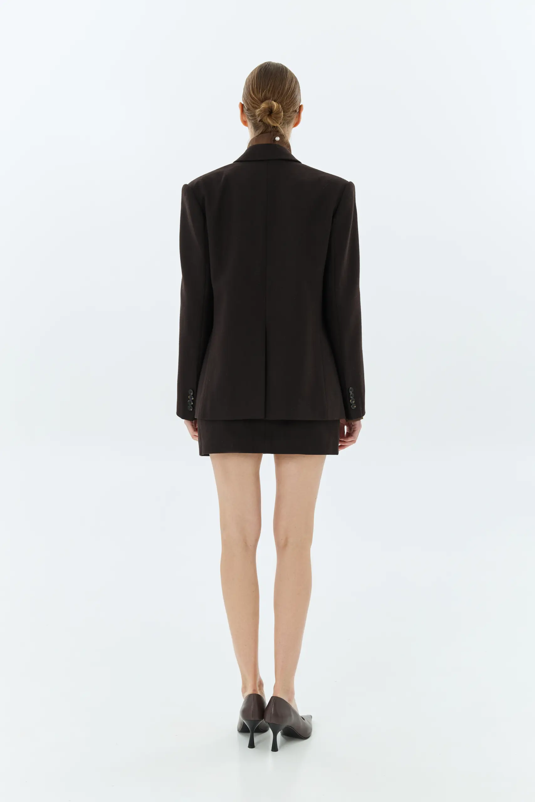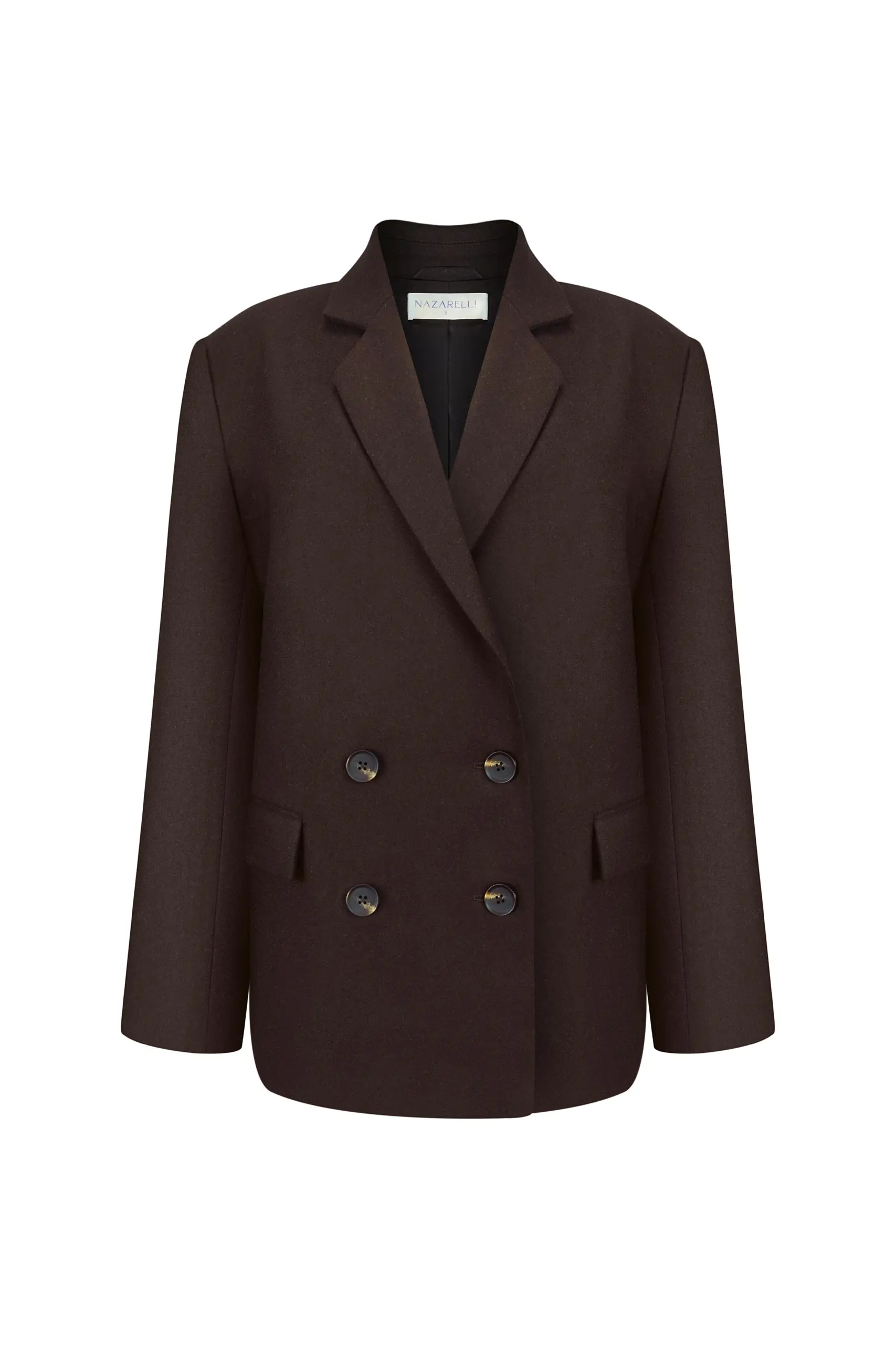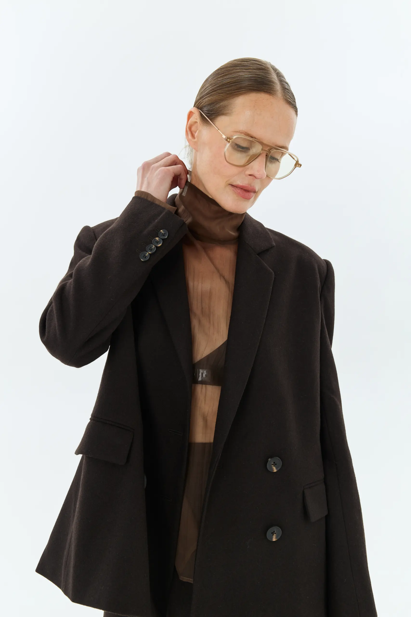 Цей жакет — втілення елегантності та сучасного стилю. Лаконічний дизайн і вільний крій роблять його ідеальним вибором як для ділових зустрічей, так і для повсякденних образів. Глибокий шоколадний відтінок легко поєднується з будь-якими образами – від офісного до повсякденного.